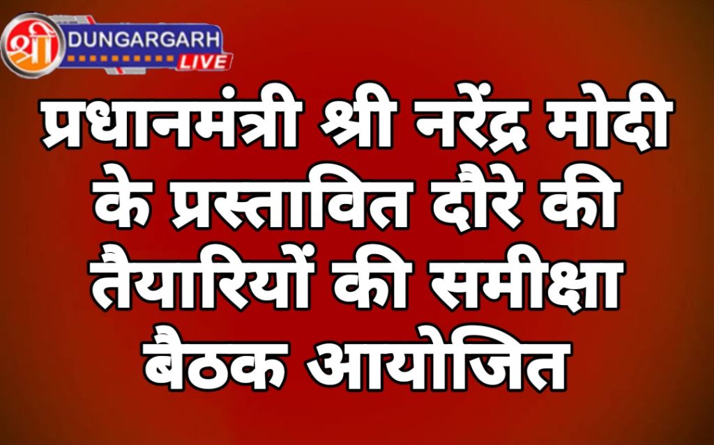 श्रीडूंगरगढ़ लाइव 05 जुलाई 2023। प्रधानमंत्री श्री नरेंद्र मोदी की 8 जुलाई की प्रस्तावित यात्रा के मद्देनजर तैयारी बैठक मंगलवार को हुई। कलेक्ट्रेट सभागार में आयोजित बैठक में संभागीय आयुक्त डॉ. नीरज के. पवन, जिला कलेक्टर भगवती प्रसाद कलाल तथा पुलिस अधीक्षक तेजस्विनी गौतम ने अधिकारियों को आवश्यक दिशा निर्देश दिए।