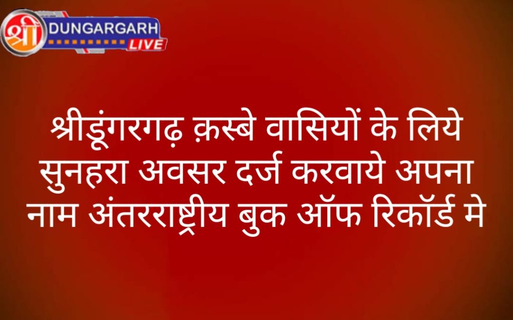 श्रीडूंगरगढ़ कस्बे वासियों के लिए सुनहरा अवसर अंतर्राष्ट्रीय बुक ऑफ रिकॉर्ड में अपना नाम दर्ज कराने हेतु