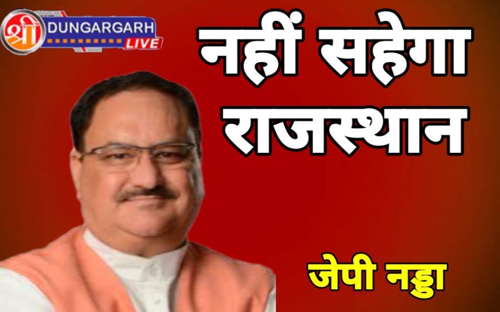 श्रीडूंगरगढ़ लाइव 16 जुलाई 2023। भाजपा के राज्यव्यापी अभियान ‘नहीं सहेगा राजस्थान’ का बीजेपी के राष्ट्रीय अध्यक्ष जेपी नड्डा ने शुभारंभ किया। कांग्रेस सरकार के खिलाफ राजस्थान BJP के अभियान का शुभारंभ किया। भाजपा के राष्ट्रीय अध्यक्ष जेपी नड्डा ने कहा कि गरीबों के पॉकेट का हिस्सा सरकार मारती है। सरकार रोजाना भ्रष्टाचार के रिकॉर्ड बना रही है। लूट अत्याचार वाली सरकार है। कुशासन वाली सरकार है। इस सरकार को नवंबर में बाहर का रास्ता दिखाएं। महिला, बच्चे, आदिवासियों सभी तबकों पर अत्याचार हुआ. हमने तय किया है कि 2 करोड़ लोगों तक पहुंचेंगे। हम भ्रष्टाचार मुक्त सरकार लेकर आएंगे। थानागाजी का गैंगरेप सभी के सामने था। अलवर आलापुरा में मजहबी सिख बच्ची का गैंगरेप हुआ बाद में मर्डर हुआ।