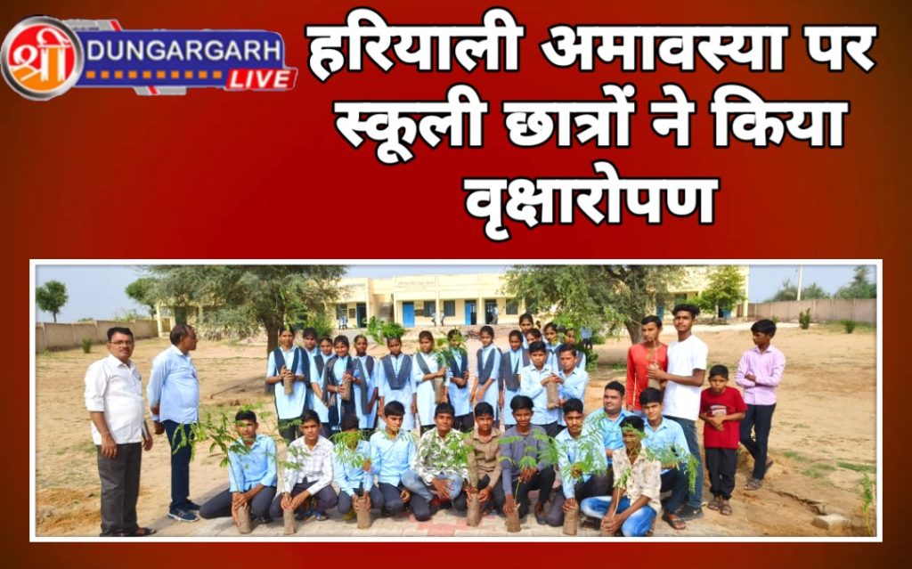 श्रीडूंगरगढ़ लाइव 17 जुलाई 2023। बरसात का मौसम है और आज हरियाली अमावस्या भी। क्षेत्र के गांव जैसलसर के राजकीय उच्च माध्यमिक विद्यालय में बारिश और नव सृजन के मौसम को देखते हुए स्कूल के विद्यार्थियों ने और अध्यापकों के साथ मिलकर पेड़ लगाओ, पर्यावरण बचाओ अभियान के तहत पौधे लगाए गए ।