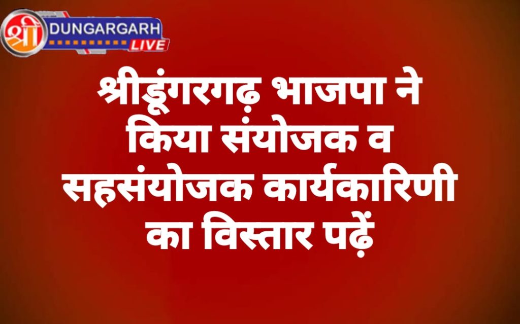 श्रीडूंगरगढ़ भाजपा बीकानेर देहात ने श्रद्धा एवं संत संपर्क अभियान के विधानसभा वार सयोजक एवं सह सयोजक नियुक्त किये ।आज भारतीय जनता पार्टी राजस्थान प्रदेशाध्यक्ष श्री सी. पी. जोशी ,प्रदेश संगठन महामंत्री श्री चंद्रशेखर ,श्रद्धा एवं संत संपर्क अभियान के प्रदेश संयोजक श्री हरिहर पारीक , बीकानेर देहात संगठन प्रभारी श्री ओम सारस्वत, बीकानेर देहात जिलाध्यक्ष श्री जालम सिंह भाटी के दिशा निर्देशानुसार श्रद्धा एवं संत संपर्क अभियान के जिला संयोजक हेमनाथ जाखड व् सह संयोजक किशन सिंह राजपुरोहित ने अपनी कार्यकारणी का विस्तार करते हुए विधानसभा वार सयोजक एवं सह सयोजको की नियुक्तियां किया । श्रीडूंगरगढ़ विधानसभा सयोंजक श्री लक्ष्मीनारायण सेवग सह संयोजक श्री किशोर दास स्वामी को नियुक्ति किया गया। लक्ष्मीनारायण सेवग और किशोरदास ने बताया कि पार्टी ने जो जिम्मेदारी हमे दी है उस पर हम खरे उतरेंगे और पार्टी की रीति नीति को हम आगे बढ़ाएगे । वही नोखा से संयोजक श्री मांगीलाल नायक सह संयोजक श्री मांगीलाल जोशी , लूँणकरणसर संयोजक श्री रामकरण सह संयोजक श्री मांगीलाल सिद्ध ,खाजूवाला संयोजक श्री शंकरलाल पारीक सह संयोजक श्री किशन सिंह राजपुरोहित , कोलायत संयोजक श्री चंद खिचड सह सयोजक श्री वासुदेव जाजडा को नियुक्त किया गया है