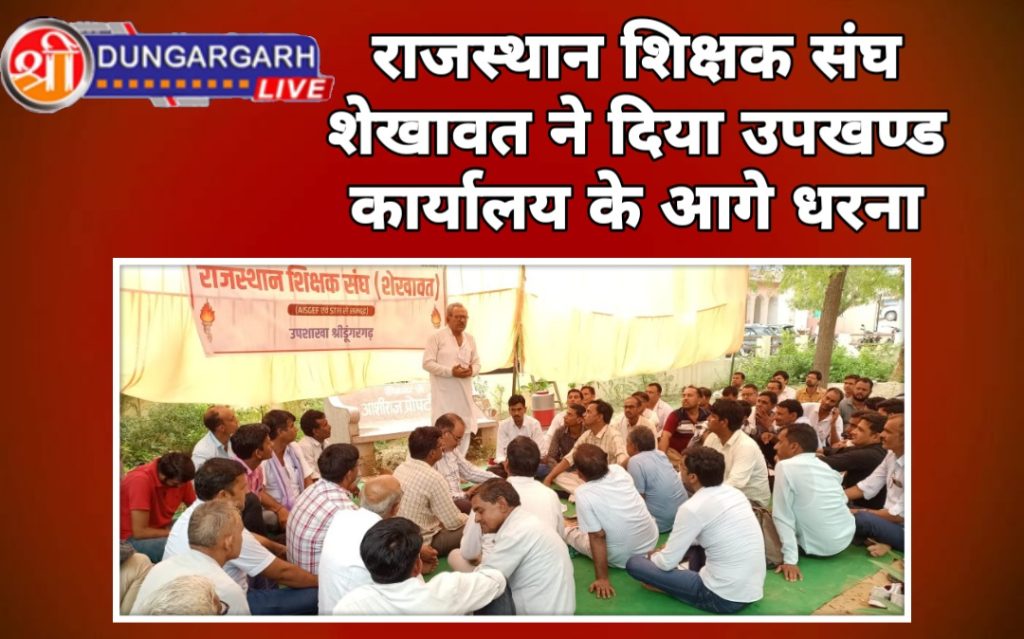 श्रीडूंगरगढ़ लाइव 18 जुलाई 2023। राजस्थान शिक्षक संघ (शेखावत) श्री डूंगरगढ़ ने आज उपखण्ड कार्यालय श्रीडूंगरगढ़ के आगे धरना प्रदर्शन किया। संघ ने उपखण्ड अधिकारी मुकेश चौधरी को कार्य बहिष्कार का संकल्प पत्र देते हुए मांग की कि शिक्षकों को गैर शैक्षणिक कार्यो से मुक्त किया जाए।