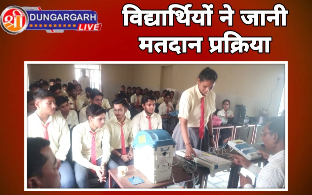 श्रीडूंगरगढ़ लाइव 20 जुलाई 2023। राजस्थान निर्वाचन आयोग और जिला निर्वाचन अधिकारी बीकानेर के निर्देशानुसार निर्वाचक रजिस्ट्रीकरण पदाधिकारी एवं उपखण्ड अधिकारी श्रीडूंगरगढ़ कार्यालय द्वारा आज श्रीडूंगरगढ़ शहर के विभिन्न शिक्षण संस्थानों भारती निकेतन स्कूल ,ब्राइट फ्यूचर स्कूल औऱ श्रीडूंगरगढ़ महाविद्यालय श्रीडूंगरगढ़ में मतदाता जागरूकता स्वीप अभियान के तहत स्कूल कॉलेज स्टूडेंट्स के सम्मुख ईवीएम और वीवीपीएटी मशीनों का डेमोंस्ट्रेशन कार्यक्रम रखा गया जिसमें निर्वाचन शाखा श्रीडूंगरगढ़ से नौरत मल शर्मा ALMT, प्रदीप कौशिक ALMT, किशोरीलाल आदि दक्ष प्रशिक्षकों द्वारा ईवीएम मशीन वीवीपीएटी मशीन का डेमोंस्ट्रेशन किया गया।