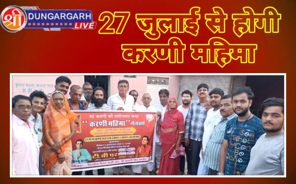 श्रीडूंगरगढ़ लाइव 22 जुलाई 2023। कस्बे के मोमासरबास स्थित करणी भवन में माँ करणी के भक्तों की एक बैठक हुई जिसमे 27 जुलाई से आयोजित माँ करणी महिमा के व्यवस्था सम्बंधित कार्यो को एक टीम बनाकर बांटा गया। बैठक की अध्यक्षता करते हुए गोवर्धन जोशी ने कहा कि माँ करणी महिमा का संगीतमय वाचन डॉ करणीप्रताप सिंह करेंगें। मालचंद व्यास, चंपालाल जोशी, ओमप्रकाश गांधी, वीरेन्द्र सिद्ध, मदनलाल कायल, सत्यनारायण व्यास, नानूराम जोशी, आनंद जोशी सहित मोहल्लेवासियो ने कथा की सम्पूर्ण व्यवस्था और आयोजन संबंधित कार्यो पर चर्चा की।