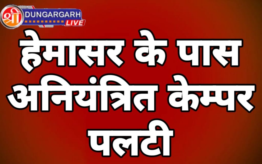 श्रीडूंगरगढ़ लाइव 25 जुलाई 2023। राष्ट्रीय राजमार्ग पर हेमासर के पास एक बोलेरो केम्पर अनियंत्रित होकर पलट गयी। गाड़ी सवार एक व्यक्ति घायल हो गया। केम्पर क्षतिग्रस्त होगयी।