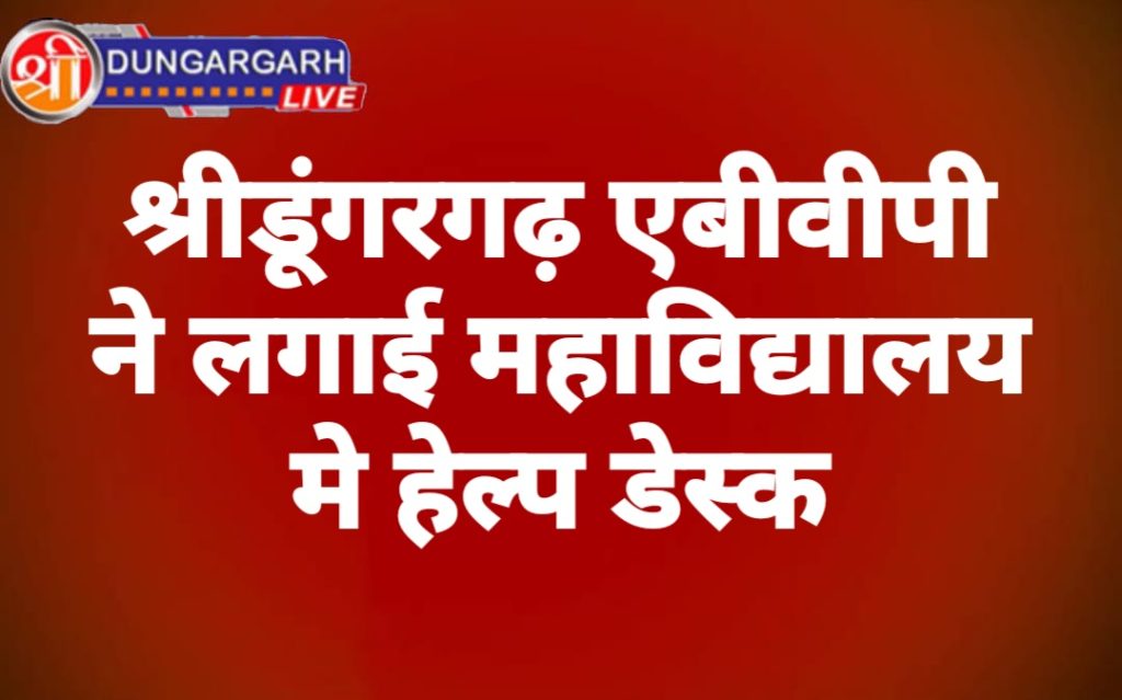 श्रीडूंगरगढ़ आज अखिल भारतीय विधार्थी परिसद द्वारा सरकारी महाविधालय मे छात्र सहायता केन्द्र लगाया गया ,नगर मंत्री योगेश पारीक ने बताया की परिसद द्वारा आज छात्र-छात्राओ को एडमिसन भरने मे सहायता एव अन्य कार्य के लिए हेल्प डेस्क लगाया गया इस दोरान विजय सिंह, मोनिका राजपुरोहीत, सुनील सारस्वत ,योगेश सारस्वत ,मनिष गिरी, गोविन्द सिद्ध, सीमा तावनिया ,भवानी शर्मा आदी मोजुद थे