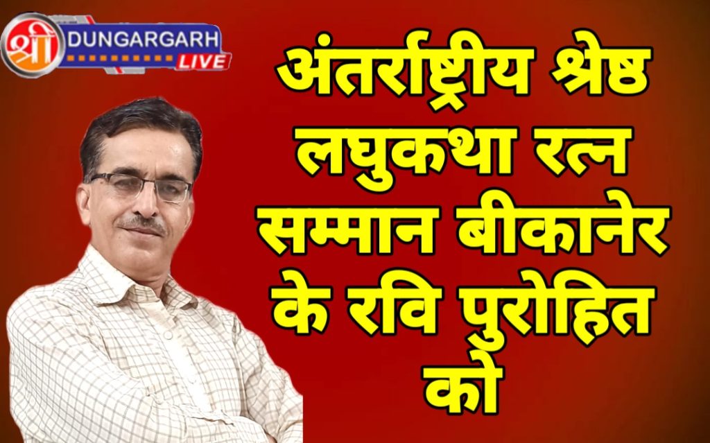श्रीडूंगरगढ़ लाइव 28 जुलाई 2023। नारी अभिव्यक्ति मंच ‘पहचान’, फरीदाबाद द्वारा बीकानेर के वरिष्ठ साहित्यकार रवि पुरोहित सहित 14 लघुकथाकारों को शकुन्तला कपूर स्मृति श्रेष्ठ लघुकथा सम्मान से जनवरी 2024 में समादृत किया जाएगा। संस्थान की अध्यक्ष कमल कपूर ने बताया कि अन्तरराष्ट्रीय स्तर पर प्रकाशित होने वाले लघुकथा संकलन हेतु लघुकथाएं आमंत्रित की गई थी, जिसमें 225 लघुकथाकारों की रचनाएं विचारार्थ प्राप्त हुई थी। इन लघुकथाओं में से बीकानेर के लघुकथाकार रवि पुरोहित के साथ डॉ. अखिलेश पालरिया, अनघा जोगलेकर, डॉ. उपमा शर्मा, आचार्य नीरज शास्त्री, प्रीति मिश्रा, मधु जैन, राधेश्याम भारतीय, राममूरत राही, डॉ. रश्मि बजाज, वंदना रानी दयाल, विमला नागला, डॉ. संध्या तिवारी, सृष्टि सिन्हा सहित 14 लघुकथाकारों का चयन अन्तरराष्ट्रीय श्रेष्ठ लघुकथा रत्न सम्मान के लिए किया गया है। उपाध्यक्ष डॉ. अंजु दुआ ‘जैमिनी’ ने बताया कि जनवरी, 2024 में आयोज्य भव्य समारोह में ‘तपती पगडंडियों के पथिक’ पुस्तक का लोकार्पण व चयनित लघुकथाकारों का सम्मान किया जाएगा। समादृत प्रत्येक लघुकथाकार को तिल-फूल राशि, प्रशस्ति-पत्र, शुभ्र मोती माला व किताब कलम के स्मृति चिह्न अर्पित किये जायेंगे।