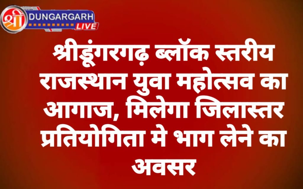 श्रीडूंगरगढ़ ब्लॉक स्तरीय राजस्थान युवा महोत्सव 2023 का आयोजन दिनांक 31.07.2023 को श्री वीर तेजा जी मंदिर धर्मशाला स्टेशन रोड श्रीडूंगरगढ़ में प्रातः 9 बजे से प्रारम्भ होगा। जिसमें मुख्य अतिथि श्री गीरधारीलाल महिया विधायक श्रीडूंगरगढ़ ,विशिष्ट अतिथि श्रीमती सावित्री देवी गोदारा प्रधान पंचायत समिति श्रीडूंगरगढ़, अध्यक्ष मानमल शर्मा नगरपालिका श्रीडूंगरगढ़ होगें। प्रभारी आरपी पवन शर्मा ने श्रीडूंगरगढ़ लाइव न्युज को जानकारी देते हुवे बताया कि इस महोत्सव में श्रीडूंगरगढ़ ब्लॉक के 15 वर्ष 29 वर्ष तक के 640 प्रतिभागीयों ने 17 सांस्कृतिक गतिविधियों में भाग लेने हेतु ने राजस्थान युवा बोर्ड की वेब साईट पर पंजीयन करवाया है। इसमे प्रथम, द्वितीय व तृतीय स्थान में चयनित प्रतिभागियों को जिला स्तर प्रतियोगिता में भाग लेने का अवसर मिलेगा।