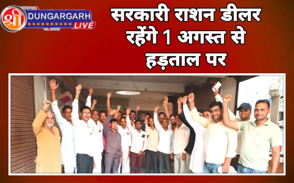 श्रीडूंगरगढ़ लाइव 31 जुलाई 2023। सरकारी राशन डीलर यूनियन श्रीडूंगरगढ़ के अध्यक्ष शुभकरण बिश्नोई ने बताया कि हमारे संगठन ऑल इंडिया फेडरेशन राशन डीलर जयपुर ने 9 सूत्री मांगों को लेकर 1 अगस्त से अनिश्चित कालीन राशन वितरण का बहिष्कार करने का निर्णय लिया है। जिसमे श्रीडूंगरगढ़ के समस्त राशन डीलर भी सम्मिलित है। आज जिला कलेक्टर को ज्ञापन दिया जायेगा।