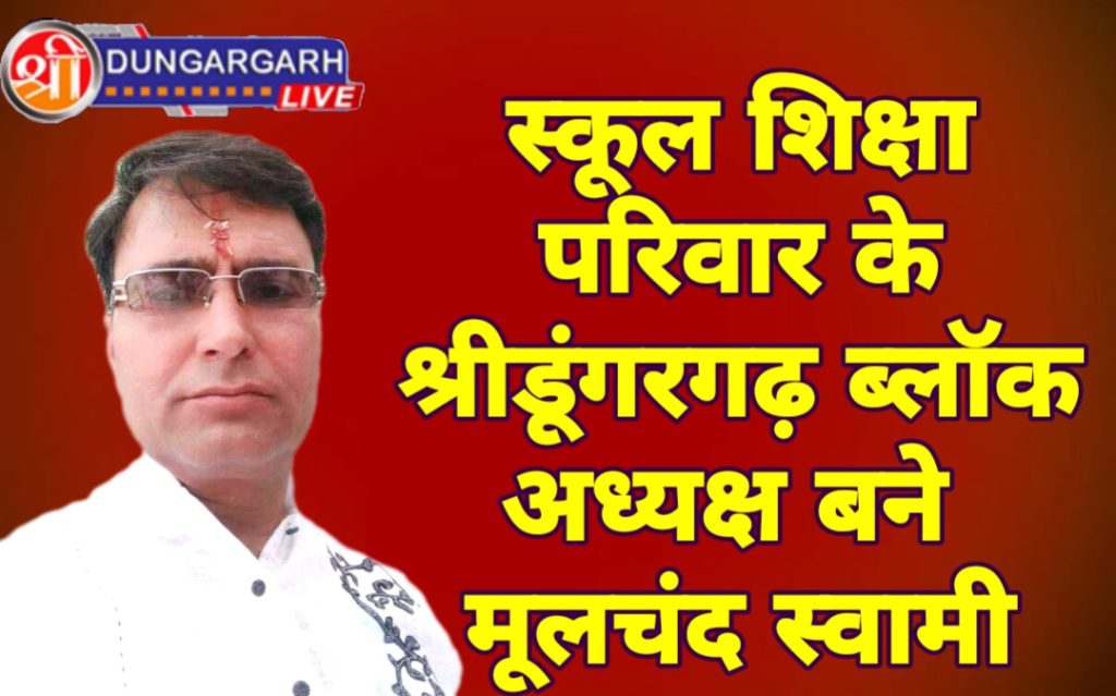 श्रीडूंगरगढ़ लाइव 01 अगस्त 2023। विद्यालय संगठन स्कूल शिक्षा परिवार के श्रीडूंगरगढ़ ब्लॉक अध्यक्ष पद के लिए मंगलवार को कस्बे के मूलचन्द स्वामी को निर्वाचित घोषित किया गया है।