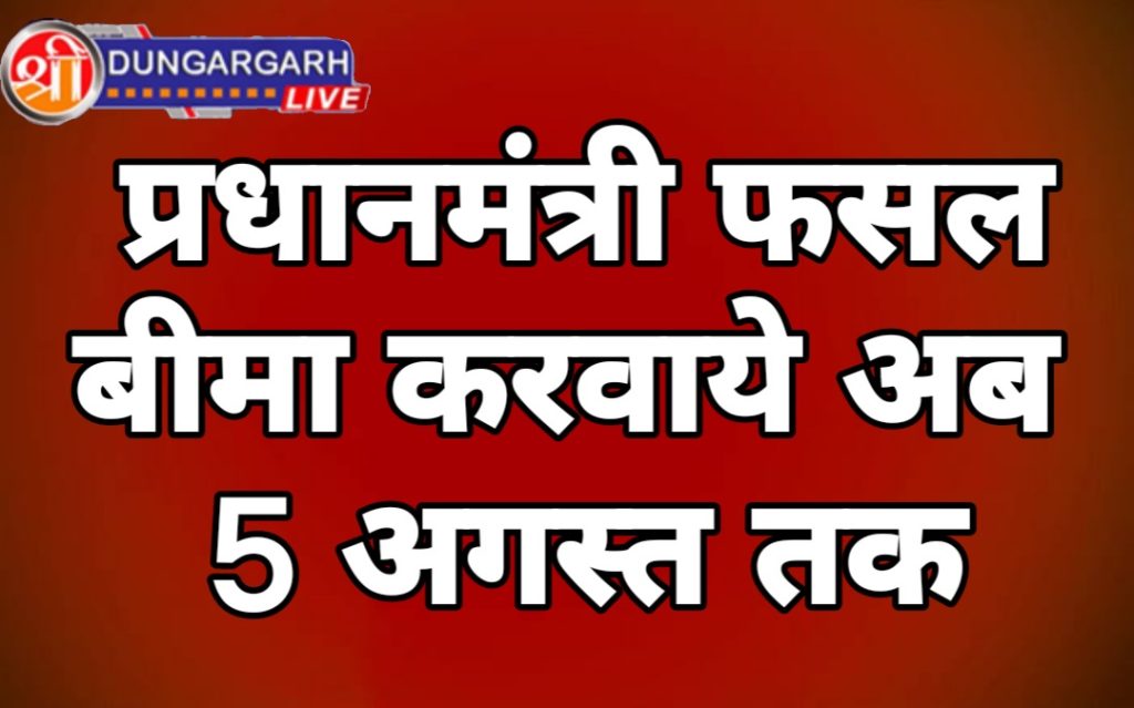 श्रीडूंगरगढ़ लाइव 01 अगस्त 2023। प्रधानमंत्री फसल बीमा योजना के तहत गैर ऋणी किसान खरीफ फसलों के लिए अब 5 अगस्त तक बीमा राशि जमा करवा सकते हैं।