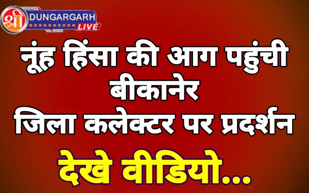 बीकानेर में आज जिला कलेक्टर कार्यालय के सामने बजरंग दल और विश्व हिंदू परिषद के सैंकड़ो कार्यकर्ताओं ने नूंह हिंसा पर प्रदर्शन और नारेबाजी की। विश्व हिंदू परिषद के विनोद सेन ने जिला कलेक्टर को राष्ट्रपति के नाम ज्ञापन देते हुए मांग की कि जो भी इस हिंसा में मारे गए है उन्हें 20 लाख रुपये दिए जाये और जिनका नुकसान हुआ है सरकार उन्हें मुआवजा प्रदान करे।