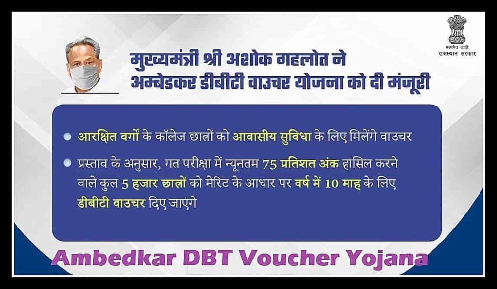 सामाजिक न्याय एवं अधिकारिता विभाग के संयुक्त निदेशक एल.डी. पवार ने बताया कि योजनांतर्गत समस्त स्नातक एवं स्नातकोत्तर (केवल शैक्षणिक पाठ्यक्रमों कला, विज्ञान एवं वाणिज्य संकाय हेतु) राजकीय महाविद्यालयों में अध्ययनरत् छात्र (बालक) जो घर से दूर रहकर अन्य स्थान पर कमरा किराये पर लेकर (पेईंग गैस्ट के रूप में) अध्ययन करते हैं उन छात्रों के लिए आवास, भोजन एवं बिजली-पानी इत्यादि सुविधाओं हेतु पुनर्भरण राशि के रूप में अम्बेडकर डीबीटी वाउचर योजना के अन्तर्गत छात्र द्वारा महाविद्यालय में प्रवेश दिनांक से माह मार्च तक 2000/- प्रतिमाह प्रतिवर्ष (अधिकतम 10 माह हेतु) दी जाएगी।
