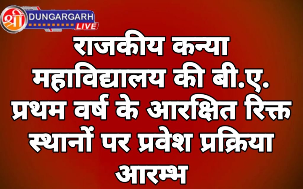 श्रीडूंगरगढ़ लाइव 04 अगस्त 2023। राजकीय कन्या महाविद्यालय श्रीडूंगरगढ़ के बी.ए. प्रथम वर्ष के रिक्त स्थानों पर प्रवेश आरम्भ हो गया है। महाविद्यालय के प्राचार्य तेजकरण चौहान ने बताया कि स्नातक प्रथम वर्ष के आरक्षित SC & MBC के रिक्त स्थानों के लिये ऑनलाइन प्रवेश प्रकिया 03 अगस्त से प्रारम्भ हो चुके है। जिसकी अंतिम तिथि 10 अगस्त है। छात्र नेता गौरव टाडा ने बताया कि जो भी छात्र प्रवेश लेना चाहें वो अपने मूल दस्तावेज साथ रखे। छात्र नेता योगेश सारस्वत ने बताया कि दस्तावेजों का सत्यापन 12 अगस्त को होकर प्रवेश की अंतिम सूची का प्रकाशन 21 अगस्त को होगा।