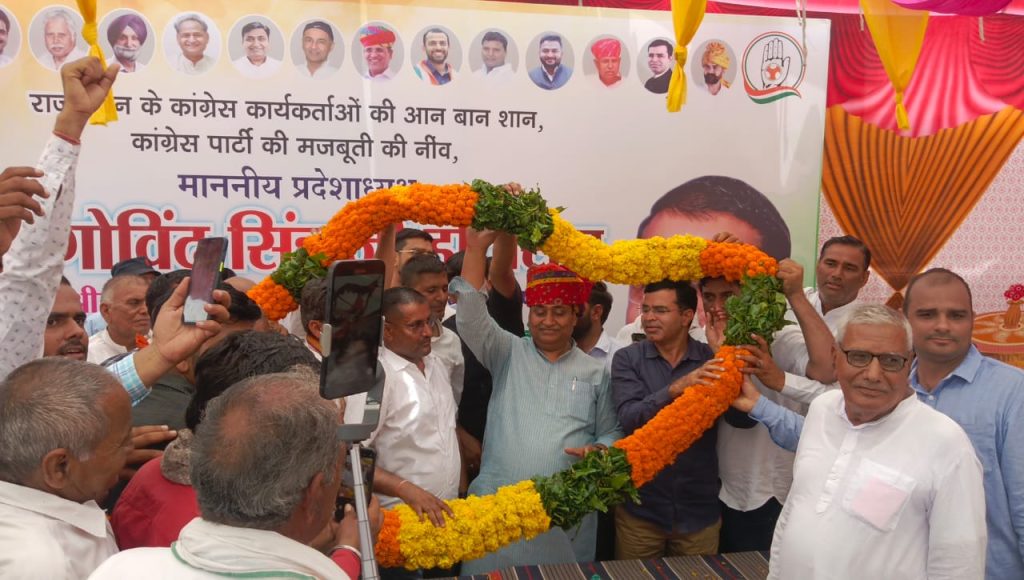 बाना ने प्रदेशाध्यक्ष को 51 किलो की माला पहनाकर स्वागत किया। प्रदेशाध्यक्ष ने अपनी सरकार की उपलब्धियों को गिनाते हुवे भाजपा पर साधा निशाना। प्रदेशाध्यक्ष ने कार्यकर्ताओं को संबोधित करते हुए कहा कि आगामी चुनावो में युवाओ की महत्वपूर्ण भागीदारी होगी।