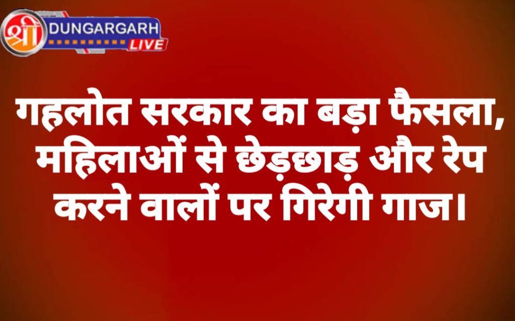राजस्थान में महिलाओं के साथ बढ़ते अपराध को लेकर गहलोत सरकार ने बड़ा कदम उठाया है। अब बालिकाओं और महिलाओं से छेड़छाड़ और रेप करने वालों को सरकारी नौकरी नहीं मिलेगी। मुख्यमंत्री अशोक गहलोत ने सोशल मीडिया के माध्यम से यह जानकारी दी। मुख्यमंत्री अशोक गहलोत ने मंगलवार को ट्वीट कर कहा कि राज्य सरकार ने फैसला किया है कि बालिकाओं एवं महिलाओं से छेड़छाड़, रेप का प्रयास एवं रेप के आरोपियों एवं मनचलों को सरकारी नौकरियों से प्रतिबंधित किया जाएगा। इसके लिए मनचलों का भी पुलिस थानों में हिस्ट्रीशीटरों की तरह रिकॉर्ड रखा जाएगा। राज्य सरकार या पुलिस द्वारा जारी किए जाने वाले इनके चरित्र प्रमाण पत्र पर यह अंकित किया जाएगा। ऐसे असामाजिक तत्वों का सामाजिक बहिष्कार करना आवश्यक है।आपको बता दें कि सीएम गहलोत ने सोमवार को मुख्यमंत्री निवास पर कानून व्यवस्था की समीक्षा बैठक की थी। बैठक में गहलोत ने कहा कि महिलाओं और कमजोर वर्ग के विरूद्ध अपराधों की रोकथाम हमारी सर्वोच्च प्राथमिकता है। मुख्यमंत्री ने पुलिस अधिकारियों को स्पेशल ऑपरेशन चलाकर मनचलों के विरूद्ध कड़ी कार्रवाई करने के निर्देश दिए। गहलोत ने कहा कि ऐसे मनचलों का रिकॉर्ड संधारित किया जाए तथा चरित्र प्रमाण पत्र में छेड़छाड़ में लिप्त होने का उल्लेख किया जाए