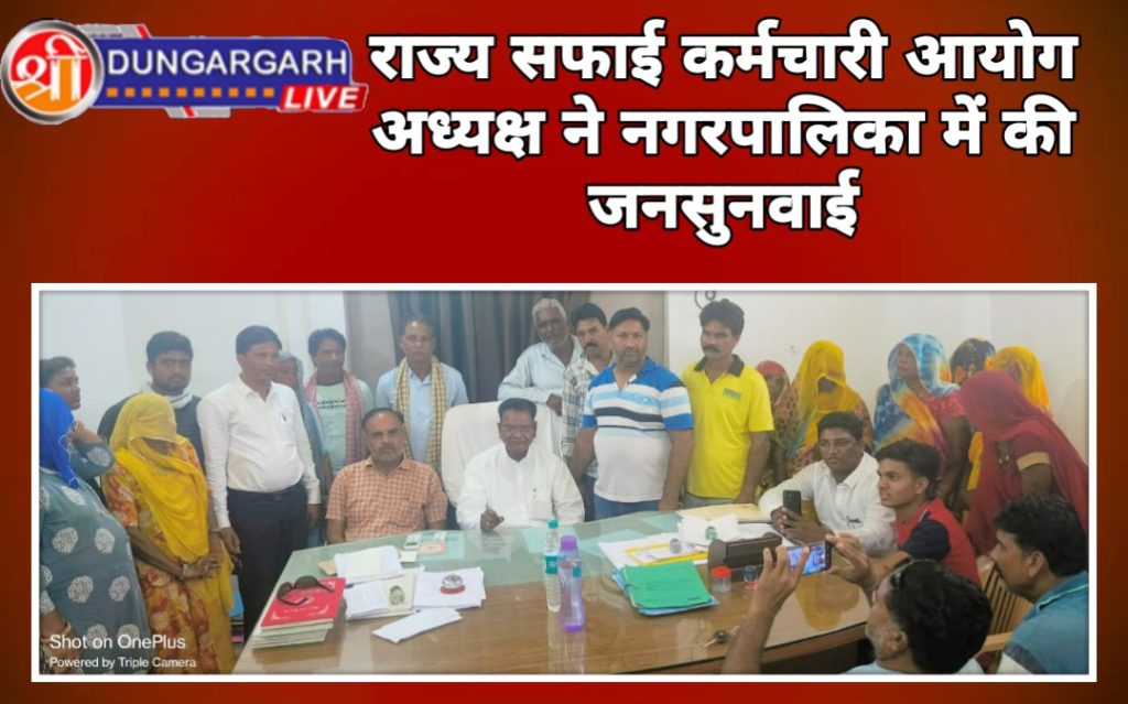 श्रीडूंगरगढ़ लाइव 08 अगस्त 2023। राजस्थान सफाई कर्मचारी आयोग के अध्यक्ष किशनलाल जैदिया ने आज श्रीडूंगरगढ़ नगरपालिका में उपखण्ड अधिकारी मुकेश चौधरी और अधिशाषी अधिकारी कुंदनमल देथा के साथ जनसुनवाई की। श्रीडूंगरगढ़ नगरपालिका नेता प्रतिपक्ष प्रतिनिधि मनोज पारख, पार्षद दाऊद काजी, मघराज तेजी, मनोनीत पार्षद श्यामसुंदर दर्जी, सफाई मजदूर कांग्रेस के बीकानेर अध्यक्ष राजन जैदिया, शहर अध्यक्ष विनोद वाल्मीकि, संदीप नाई, कांतिलाल चांवरिया, राहुल वाल्मीकि, रजनीकांत मलघट, हेमराज मलघट, जीतू मलघट, विष्णु मलघट, एडवोकेट पुखराज तेजी ने एक स्वर में मांग रखी कि सफाईकर्मी भर्ती में सिर्फ वाल्मीकि समाज को ही प्राथमिकता मिले और श्रीडूंगरगढ़ क्षेत्र के अलावा किसी बाहरी व्यक्ति की भर्ती ना हो।