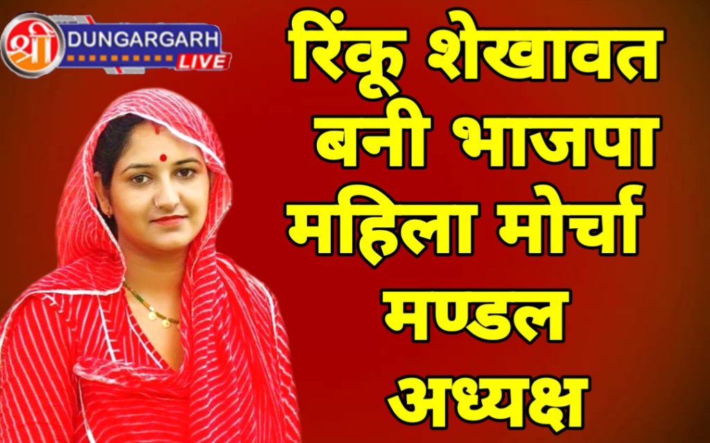 श्रीडूंगरगढ़ लाइव 12 अगस्त 2023। भारतीय जनता पार्टी प्रदेश अध्यक्ष सी.पी. जोशी, महिला मोर्चा प्रदेश अध्यक्ष रक्षा भंडारी, बीकानेर देहात जिला अध्यक्ष जालम सिंह भाटी के निर्देशानुसार महिला मोर्चा जिला अध्यक्ष कुसुम शर्मा के द्वारा दंतौर मण्डल अध्यक्ष पद पर रिंकू शेखावत को नियुक्त किया गया। दंतौर मण्डल अध्यक्ष राजेन्द्र सुथोड़, युवा मोर्चा मण्डल अध्यक्ष सुभाष सारस्वत व पार्टी कार्यकर्ताओ ने बधाई दी। रिंकू शेखावत ने प्रदेश व जिला नेतृत्व को धन्यवाद दिया और कहा में पूरी कोशिश करूंगी पार्टी में ज्यादा से ज्यादा महिलाएं को जुड़े।