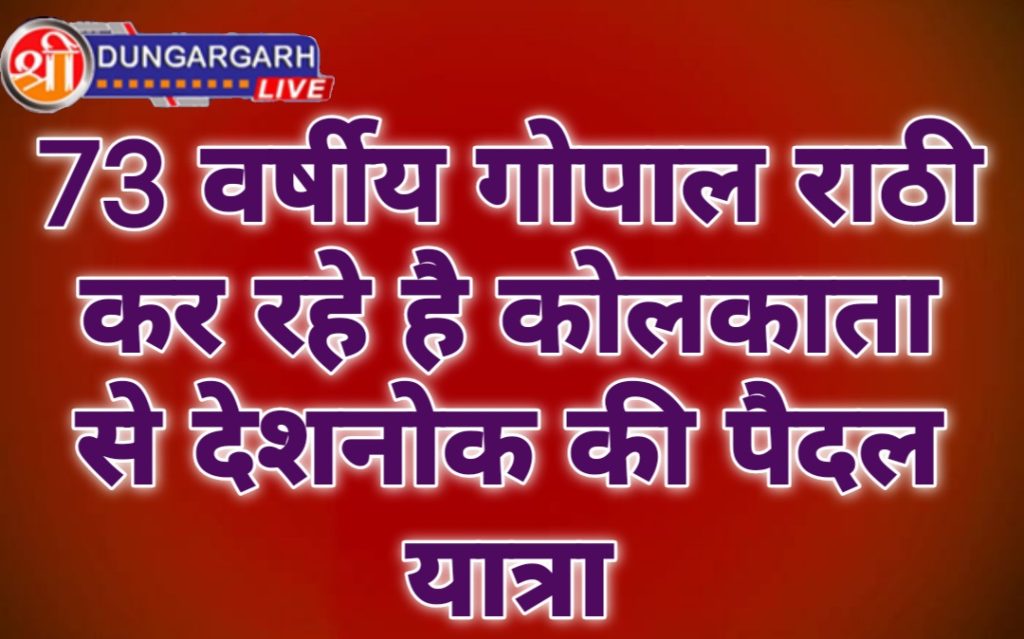 श्रीडूंगरगढ़ लाइव 13 अगस्त 2023। जब आस्था चरम पर हो तो राह की कोई भी रुकावट मुश्किल नहीं लगती। हमारा देश सनातन धर्म और ऋषि मुनियों की तपोभूमि है। यहाँ के निवासी धार्मिक और सेवा को ही सर्वोपरि मानते है। अपने ईष्ट, धर्म और आस्था के लिये कुछ भी कर गुजरने का जज़्बा रखते है। ऐसे धार्मिक और आस्थावान व्यक्ति है देशनोक निवासी कोलकाता प्रवासी गोपाल राठी। हमारे कोलकाता संवाददाता गोरधन सारस्वत ने बताया कि राठी जी आज सुबह कोलकाता से माँ करणी के दर्शनार्थ पैदल रवाना हुए है। राठी जी इस दौरान लगभग 2000 किलोमीटर की यात्रा करेंगें। 73 वर्षीय गोपाल जी राठी ने बताया कि वो नवरात्रि में मां के दरबार मे हाजरी लगा देंगे। ये अकेले ही पैदल चल रहे है और इनकी सेवा में 10 सेवादार है।