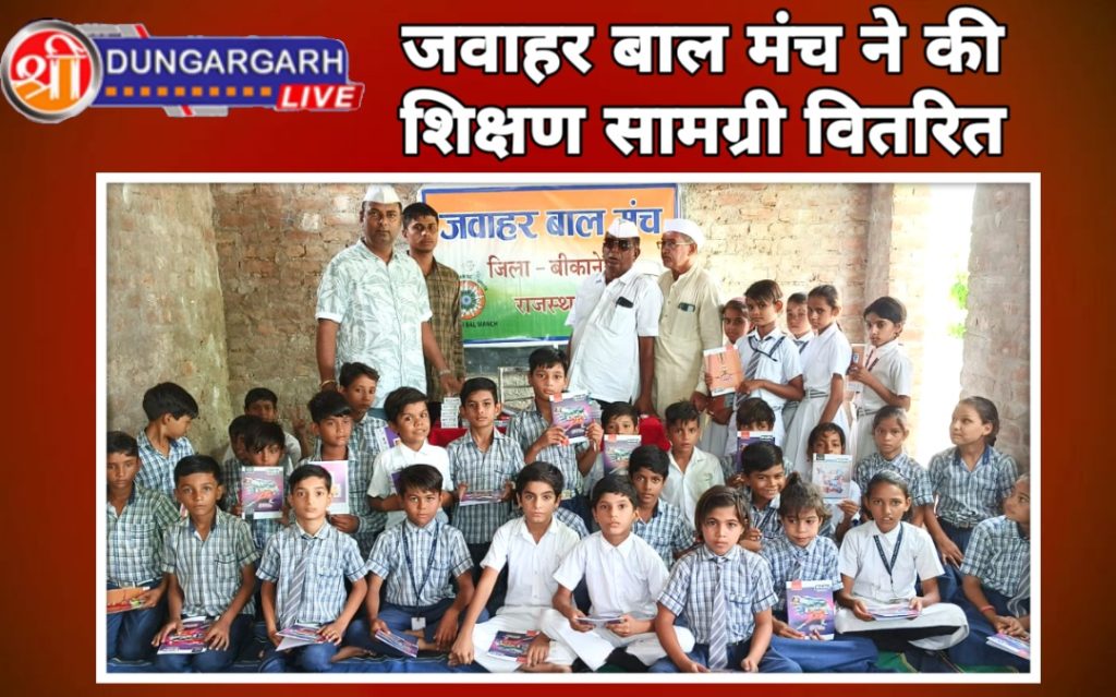 श्रीडूंगरगढ़ लाइव 16 अगस्त 2023। श्रीडूंगरगढ़ के शिशु भारती पब्लिक स्कूल में कक्षा 1 से 8वीं तक के छात्र-छात्राओं को जवाहर वाल मंच राजस्थान द्वारा स्टेशनरी सामग्री वितरित की गई।संस्था के प्रधानाध्यापक सुभाष सिद्ध बाना ने बताया कि कार्यक्रम के मुख्य अतिथि जवाहर बाल मंच के स्टेट कॉर्डिनेटर विमल भाटी थे। भाटी के आर्थिक सौजन्य से ही सभी विद्यार्थियों को कॉपी, पेन, पेंसिल सहित अन्य शिक्षण सामग्री वितरित की गई।