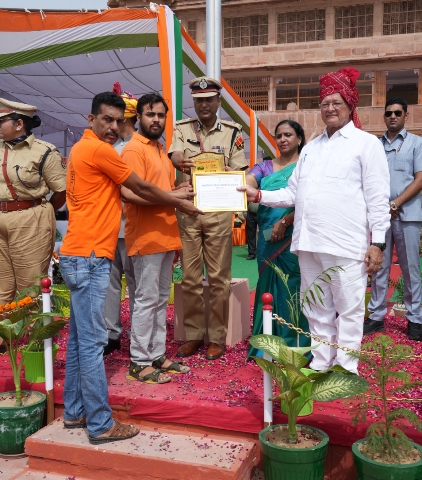 स्वतंत्रता दिवस के राष्ट्रीय पर्व पर बीकानेर में शिक्षा मंत्री बी. डी. कल्ला, संभागीय आयुक्त उर्मिला राजोरिया, जिला कलेक्टर भगवतीप्रसाद कलाल ने समिति के सेवादारों रामावतार सुथार , हरि शर्मा को सेवा का सम्मान दिया।