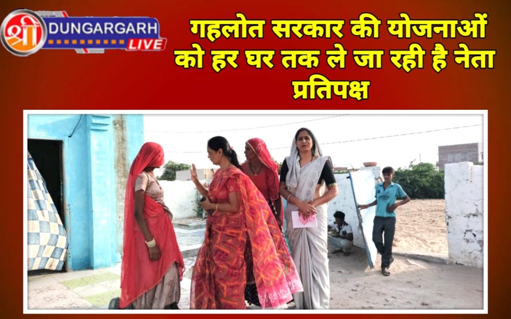 श्रीडूंगरगढ़ लाइव 16 अगस्त 2023। राजस्थान की अशोक गहलोत सरकार की जनहितकारी और लोकप्रिय योजनाओ का लाभ आमजन को किस प्रकार मिले इसका प्रभावशाली तरीका अपनाया है श्रीडूंगरगढ़ की नेता प्रतिपक्ष और कांग्रेस पार्षद श्रीमती अंजू पारख ने। नेता प्रतिपक्ष शहर कांग्रेस की महिला अध्यक्ष द्रोपती प्रजापत और अपनी साथिनों को लेकर कस्बे के हर घर मे जाकर राजस्थान की अशोक गहलोत सरकार की लोकप्रिय योजनाओं की जानकारी दे रही है और उनको लाभान्वित कर रही है।