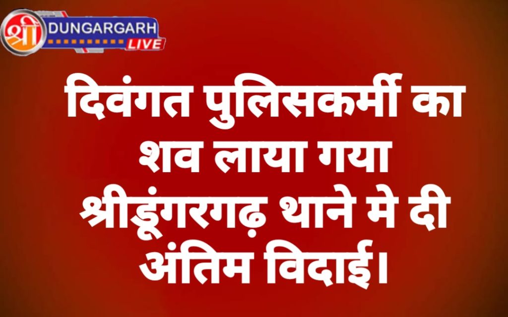 श्रीडूंगरगढ़ पुलिस थाने में थाने में कार्यरत कांस्टेबल रमेश थालोड की रामदेवरा के तालाब में डूबने से मृत्यु हो गई थी । रामदेवरा में प्रशासन द्वारा पोस्टमार्टम करवाकर शव परिजनों को सुपुर्द किया गया।आज सुबह इस घटना की जानकारी मिलने के बाद पुलिस थाने में शोक की लहर छा गई।दिवंगत पुलिसकर्मी के शव को श्रीडूंगरगढ़ पुलिस थाने लाया गया थाने में तहसीलदार राजवीर सिंह व सभी साथी पुलिसकर्मियों अधिकारियो द्वारा पुष्प अर्पित करके अपने साथी को अंतिम विदाई दी। पुलिस थाने से बड़ी संख्या में साथी पुलिसकर्मी पार्थिव शरीर को लेकर चुरू जिले के रतनपुरा गांव के लिए रवाना हो चुके हैं जहा गांव में अंतिम संस्कार किया जाएगा।