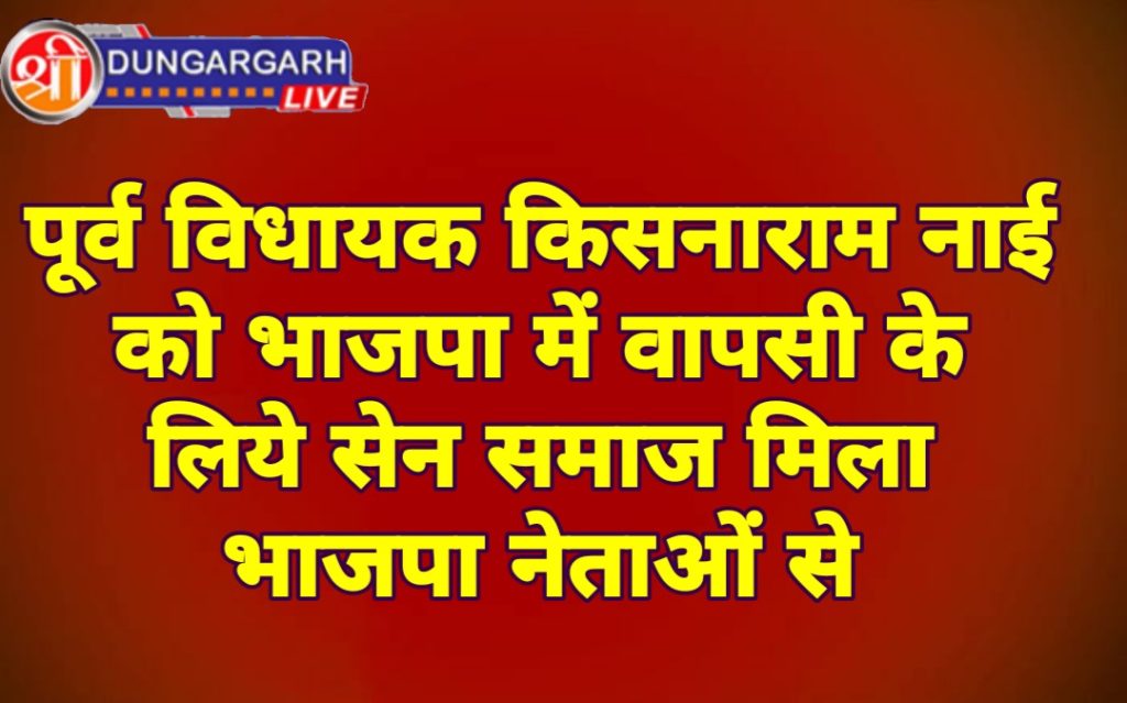 श्रीडूंगरगढ़ लाइव न्युज 18 अगस्त 2023। श्रीडूंगरगढ़ राजनीतिक सरगर्मियां तेज हो गई हैं। पूर्व विधायक को पार्टी मे फिर से शामिल करने के लिए आज शुक्रवार को राष्ट्रीय सेन समाज राजस्थान का प्रतिनिधि मण्डल जयपुर पहुंचा। सेन समाज के अध्यक्ष ओमप्रकाश फूलभाटी ने बताया कि पूर्व विधायक किशनाराम नाई को भाजपा में फिर से शामिल करने की मांग का ज्ञापन लेकर प्रतिनिधि मण्डल श्रवणकुमार नाई पूर्व प्रदेशाध्यक्ष भारतीय सेन समाज, सुनील गहलोत, राष्ट्रीय अध्यक्ष नारायणी सेना, गोपाल नाई पुर्व नगर पालिका अध्यक्ष राजलदेसर, वृतिका सेन, सुखदेव सेन, भैरूलाल सेन, कमल सेन, रामेश्वर सेन, रामराज सेन, विरेन्द्र सेन, मांगीलाल सेन की ओर से भाजपा के प्रदेश प्रभारी अरूणसिंह, नेता प्रतिपक्ष राजेन्द्र राठौड़ व प्रदेश संगठन महामंत्री चन्द्रशेखर को ज्ञापन दिया। प्रतिनिधि मण्डल ने पूर्व विधायक किशनाराम नाई को भाजपा में ससम्मान पुनः शामिल करने, मूल ओबीसी से आने वाले नाई समाज को भाजपा प्रदेश टीम में उचित प्रतिनिधित्व देने व विधान सभा चुनाव में भाजपा से कम से कम दो टिकट नाई समाज को देने की मांग की है।