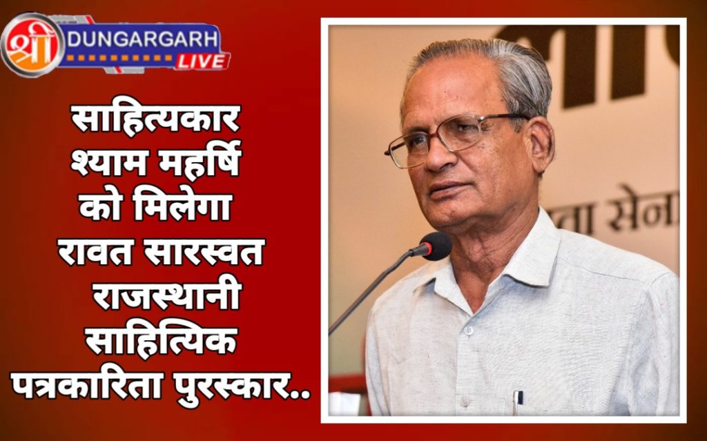 श्रीडूंगरगढ़ लाइव 20 अगस्त 2023। राजस्थानी भाषा, साहित्य एवं संस्कृति अकादमी, बीकानेर का वार्षिक समारोह सोमवार को आयोजित किया जाएगा। इस समारोह में कस्बे के राजस्थली त्रैमासिक पत्रिका संपादक श्याम महर्षि पुरस्कृत होंगे। अकादमी सचिव शरद केवलिया के अनुसार बीकानेर वेटरनरी विश्वविद्यालय ऑडिटोरियम में प्रातः 11 बजे आयोजित होने वाले इस समारोह में राजस्थानी भाषा की त्रैमासिक पत्रिका राजस्थली के संपादक श्याम महर्षि को रावत सारस्वत राजस्थानी साहित्यिक पत्रकारिता पुरस्कार दिया जाएगा। पुरस्कार स्वरूप 31 हजार रुपये की राशि सहित प्रशस्ति पत्र, प्रतीक चिन्ह व शॉल प्रदान किया जाएगा। कार्यक्रम में मुख्य अतिथि शिक्षा, कला, साहित्य संस्कृति एवं पुरातत्व मंत्री डॉ. बी. डी. कल्ला होंगे, अध्यक्षता अकादमी अध्यक्ष शिवराज छंगाणी करेंगे, विशिष्ट अतिथि महाराजा गंगा सिंह विश्वविद्यालय, बीकानेर के कुलपति डॉ. मनोज दीक्षित व स्वागताध्यक्ष अकादमी उपाध्यक्ष डॉ. भरत ओळा होंगे।