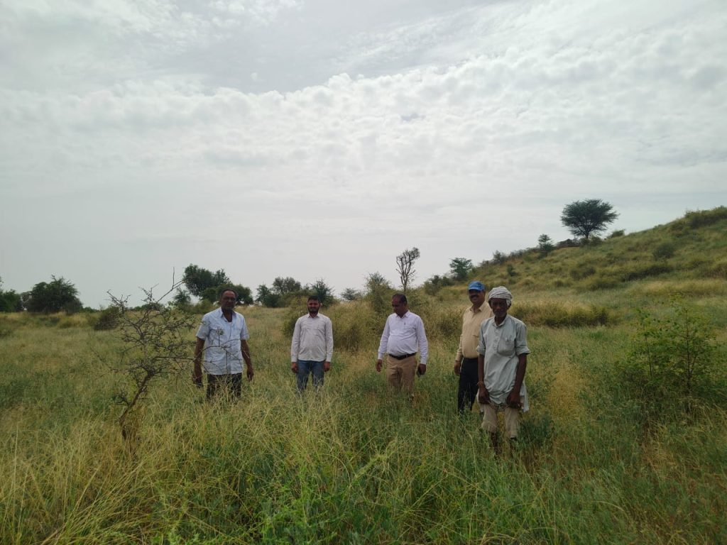 क्षेत्र भ्रमण के दौरान अधिकारियों द्वारा मिनीकिट वितरण में वितरित मोठ किस्म RMO 2251 की क्षेत्र में वास्तविक स्थिति का अवलोकन किया गया। कृषि अधिकारी पौध संरक्षण सुरेंद्र मारू ने बताया कि क्षेत्र में फसलों में पकाव की स्थिति पर होने की वजह से वर्षा की नितांत आवश्यकता है।