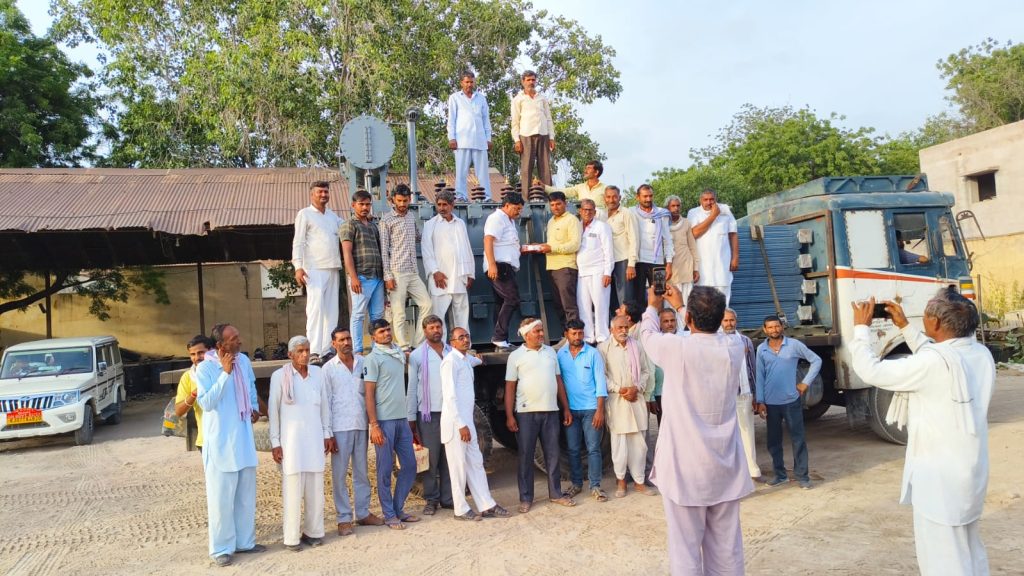 जैसलसर के किसानों को बड़ी राहत मिली है प्रधान प्रतिनिधि श्री केशरा राम गोदारा ने कल 3.15 का पावर ट्रांसफार्मर स्वीकृत करवाया जो आज माननीय मंत्री भंवरसिंह भाटी से मिलकर किसानों के सुपुर्द करवा दिया माननीय मंत्री जी तुरंत फोन कर संबंधित अधिकारियों को आज ही किसानों को देने की बात कही और प्रधान प्रतिनिधि ने साथ जाकर पावर ट्रांसफार्मर किसानों को दिलवाया किसानों की खुशी का कोई ठिकाना नहीं रहा सभी ने माननीय मंत्री का आभार जताया।ग्रामीणों में प्रधान प्रतिनिधि के साथ डूंगरसिंह, रेवंत सिंह,श्रवणराम ,सहीराम , मुकनाराम , चुन्नी लाल ,भंवरलाल ,गणेशा राम ,दीपाराम ,सावंतराम,भैराराम ,शंकरलाल पूनिया ,मामराज , रामनारायण कानाराम ,गोपालाराम ,मूलाराम ,ओमनाथ , अमरनाथ ,सीताराम सारण बीरबल राम,रमेश ,लेखराम , नेमाराम , कानाराम ,हिमणनाथ ,प्रकाश ,मुखराम ,मनीष गिरी ,सहीनाथ व गांव जैसलसर के कई किसान साथ रहे सभी ने प्रधान प्रतिनिधि केशरा राम गोदारा व पूर्व विधायक श्री मंगलाराम गोदारा जी का आभार प्रकट किया