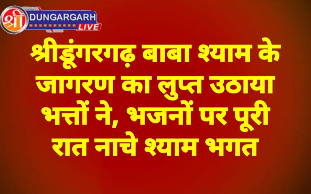 श्रीडूंगरगढ़ क़स्बे के कालू बास मे कल रात्री बाबा श्याम के जागरण मे भक्तों ने भजनों का लुप्त उठाया, भजन कलाकारों मे पिंकी पारीक सरदारशहर,दिलीप कुदाल, हनुमान कुदाल, शुभाष पारीक, दिनेश सेवाग् बीकानेर आदि कलाकारों ने अपनी सुरीली आवाज मे भत्तों का मन मोह लिया, जब कलाकार पिंकी पारीक ने भजन गाने चालू किये तब पूरी भगत मंडली नाचने लगी ,ये प्रोग्राम आयोजनकर्ता विकास सोनी, नौरतमल सोनी द्वारा करवाया गया था सीधा प्रसारण A To Z यू ट्यूब चैनल पर किया