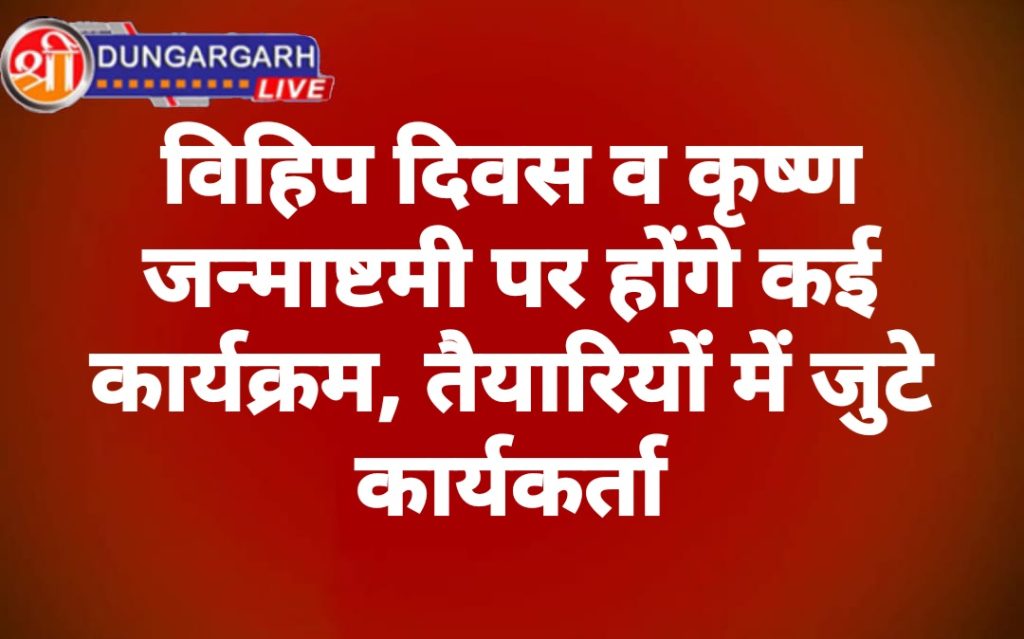 विश्व हिन्दू परिषद् दिवस व श्री कृष्ण जन्माष्टमी के उपलक्ष्य पर श्रीडूंगरगढ़ के आडसर बास स्थित श्री श्याम मंदिर में भव्य आयोजन होंगे। विहिप के अध्यक्ष श्याम सुन्दर जोशी ने बताया कि 7 सितम्बर को शाम 7.30 बजे शुरू ह वाले इस आयोजन में बाल कृष्ण राधा प्रतियोगिता, मटकी फोड़ प्रतियोगिता व भजनों पर नृत्य प्रतियोगिता आयोजित होगी। वहीं जन्माष्टमी पर भगवान कृष्ण के छप्पन भोग लगाया जायेगा। यह आयोजन विश्व हिन्दू परिषद्, बजरंग दल, मातृशक्ति व दुर्गा वाहिनी के संयुक्त तत्वावधान में आयोजित किया जा रहा है। आयोजन को लेकर तैयारियों जोर शोर से चल रही है। आयोजन को लेकर सभी मंदिरों में बैनर लगाये जा रहे है। विहिप के संतोष बोहरा ने बताया कि महिलाओं के लिए बैठने की अलग से व्यवस्था की गई है। विभिन्न प्रतियोगिता में भाग लेने के लिए 9001040396, 9413074862, 6376937100, 9468692104 मोबाईल नम्बर पर सम्पर्क कर सकते है।