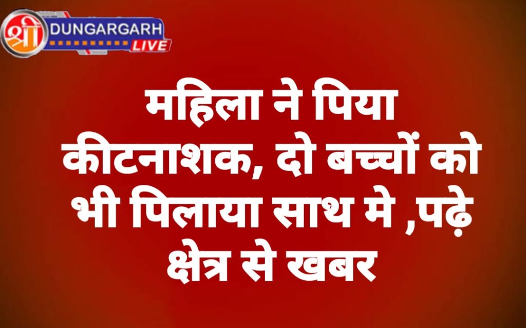 श्रीडूंगरगढ़ थाना क्षेत्र के जालबसर गांव में एक विवाहिता ने कीटनाशक पी लिया और अपनी दो बच्चों को भी पिला दिया। बीकानेर पीबीएम चौकी से मिली जानकारी के बाद श्री डूंगरगढ़ पुलिस थाने के सब इंस्पेक्टर बलबीर सिंह पीबीएम ट्रॉमा सेंटर पहुंचे लेकिन विवाहिता की हालत गंभीर होने पर वह बयान नहीं दे पाई। विवाहिता शेरा देवी पत्नी चेतन राम जाट 29 साल निवासी जालबसर बताया गया है तथा दो नाबालिक बेटिया भी है जिनकी उम्र 5 साल व 2 साल है फिलहाल सभी का ट्रॉमा सेंटर में इलाज जारी है।