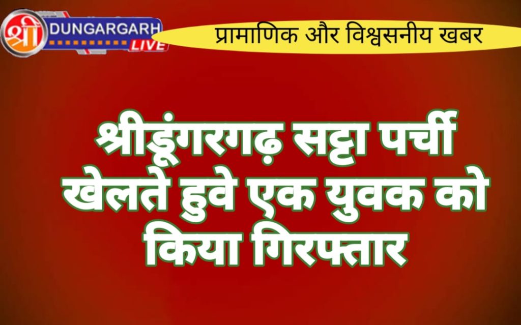 श्रीडूंगरगढ़ एक युवक सट्टा पर्ची लगाते हुवे कल पुलिस ने घूमचक्कर से गिरफ्तार किया।पुलिस का जाब्ता घूमचक्कर की तरफ जा रहे थे तभी एक युवक हाथ मे पर्ची और पेन लिए कुछ युवको के साथ खड़े थे पुलिस को देख भागने का प्रयास किया लेकिन पुलिस ने उसको गिरफ्तार कर लिया।युवक अपना नाम ओमप्रकाश पुत्र मांगीलाल मेघवाल उम्र 21 साल कालू बास का है पुलिस ने बताया कि उसकी तलाशी मे उसके जेब से 310 रुपये एक सट्टा पर्ची और पेन मिला है मुकदमा दर्ज कर जांच सुरेश गुर्जर को सुपुर्द कर दी है
