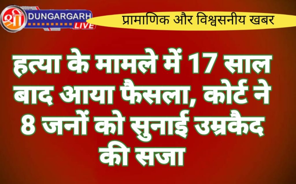 हत्या के एक मामले में अदालत ने 8 लोगों को आजीवन कारावास की सजा से दंडित किया है। हत्या 17 साल पहले हुई थी। इसी मामले में कुछ लोगों को बरी कर दिया गया है। एससी-एसटी कोर्ट के न्यायिक अधिकारी विनोद कुमार वाजा ने इस मामले में सजा सुनाई