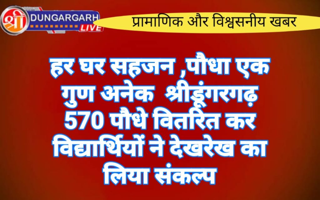 राजकीय आयुर्वेद औषधालय दुलचासर के तत्वावधान में शिवरतन जी मोहता के सौजन्य से आयुर्वेद विभाग एवं जिला कलेक्टर बीकानेर द्वारा चलाया जा रहा “हर घर सहजन ” अभियान दुलचासर एवं आसपास के गांवों में धरातल पर पूरा होता दिखाई दे रहा है, औषधालय प्रभारी डॉ जे पी चौधरी के द्वारा बुधवार को अभिनव शिक्षण संस्थान दुलचासर एवं टैगोर पब्लिक स्कूल सूडसर में विद्यार्थियों को सहजन के औषधीय गुण एवं दैनिक आहार में इसकी उपयोगिता के बारे मे विस्तृत जानकारी दी गई , डॉ चौधरी ने बताया कि सहजन जीवन शैली जनित अनेक बीमारियों में कारगर सिद्ध होने के साथ ही जोड़ों के दर्द एवं रोग प्रतिरोधक क्षमता बढ़ाने में बहुत प्रभावी औषध है साथ ही प्रोटीन विटामिन एवं बहुत से पोषक तत्त्वों का मुख्य स्त्रोत होने के कारण सहजन को आदर्श मित्र की उपाधि दी गई है बुधवार को औषधालय एवं विद्यालयों में कुल 570 पौधे वितरित करके विद्यार्थियों को उनकी देखरेख का संकल्प दिलाया