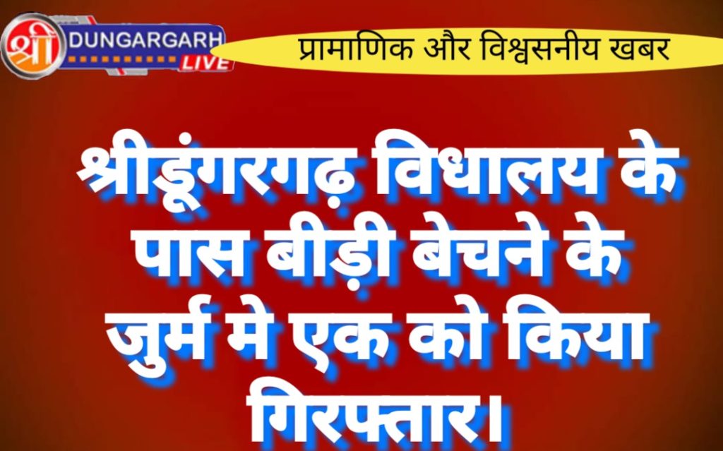 श्रीडूंगरगढ़ कल शाम नानू देवी चांडक स्कूल के पास सरदारशहर रोड पर एक दुकान मे बीड़ी बेचते और पुलिस ने दुकान मे से बीड़ी बरामद भी की आपको बता देवे की स्कूल परिसर के 50 मीटर के दायरे मे धूम्रपान करना और बेचना कानूनी अपराध है प्रहलाद जाट की नानू देवी चांडक स्कूल के पास किराये की दुकान है आरोपी दुकानदार प्रहलाद पुत्र मोहन लाल जाती जाट निवासी ठूंकरीरीयासर के खिलाफ पुलिस ने मुकदमा दर्ज कर जाच एएसआई हेतराम को सुपुर्द कर दी है