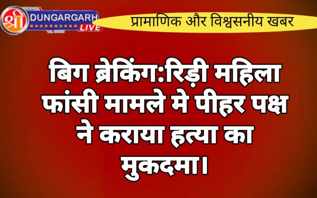 श्रीडूंगरगढ़ के गांव रिड़ी में एक विवाहिता ने ससुराल वालों के द्वारा शारीरिक, मानसिक रूप से पीड़ित किये जाने पर रो-रोकर शादी के 7 साल गुजारे और अंत में दहेज लोभी पति, ससुर, सास और देवर ने मोटरसाइकिल और दहेज के लोभ में निर्ममता की हद पार करते हुए विवाहिता को मौत की नींद सुला दिया। मामले का पता चलते ही पुलिस भी मौके पर पहुंची पर तब तक काफी देर हो चुकी थी और विवाहिता मर चुकी थी। पुलिस ने फांसी पर लटक रही विवाहिता को तुरन्त श्रीडूंगरगढ़ हॉस्पिटल पहुंचाया और शव को मोर्चरी में रखवाया गया है। मृतका के भाई व परिजन सूचना मिलने पर श्रीडूंगरगढ़ पहुंचे और मृतका के भाई ने बहन के ससुराल पक्ष पर दहेज के लिए जान से मारने का आरोप लगाते हुए मामला दर्ज कराया है। मृतका के भाई भंवरलाल पुत्र चुन्नीलाल भार्गव निवासी भार्गव मोहल्ला नापासर ने श्रीडूंगरगढ़ थाने में उपस्थित होकर बताया कि उसकी बहिन पुखा का विवाह करीब 7-8 वर्ष पूर्व विजयपाल पुत्र लालूराम भार्गव निवासी रिडी के साथ हुआ था। विवाह के समय उसने व उसके पिता चुन्नीलाल ने अपनी हैसियत से बढ़कर दान-दहेज दिया था। लेकिन विवाह के पश्चात उसकी बहन का पति विजयपाल, ससुर लालूराम, सास मनावती देवी व देवर सेठी ने दहेज की मांग को लेकर तंग परेशान करना शुरू कर दिया। उक्त सभी लोग बहिन पुखा से मोटरसाईकिल की मांग को लेकर तंग व परेशान करते थे। प्रार्थी ने बताया कि बहिन के बच्चे होने पर छुछक के रूप में अनेकों उपहार दिये थे फिर भी उसका पति, ससुर, सास, देवर मोटरसाईकिल की मांग पर अड़े रहे। जिस बाबत नापासर व रिडी में पंच पंचायती भी हुई। जिसमें नापासर का गुड्डू भार्गव, लक्ष्मीनारायण भार्गव व अन्य लोग भी थे। तब बहिन के ससुराल पक्ष ने अपनी गलती को स्वीकार किया व आईन्दा तंग परेशान नहीं करने का वचन दिया। गत 30अगस्त, 2023 की राखी के दिन बहिन ने मुझे फोन कर बताया कि वह राखी बांधने नापासर आना चाहती है। लेकिन तेरा बहनोई व मेरे सास, ससुर व देवर नापासर भेजने की मनाही कर रहे है। वे लोग कह रहे है कि यदि नापासर से मोटरसाइकिल लेकर आती है तो वहां जा, नहीं तो जाना नहीं है। तब मैंने बहिन को बताया कि अभी हमारी हैसियत मोटरसाइकिल देने की नहीं है। तब ससुराल वालों ने बहिन पुखा को नापासर नहीं भेजा। गुरुवार सुबह करीब 12-01 बजे फोन आया और पुखा ने बताया कि भैया मुझे यहां से ले जाओ वरना मेरा पति मास, ससुर व देवर मुझे जान से मारने का प्लान बना रहे हैं। तब मैंने उसको समझाया कि ऐसा कुछ नही होगा, मैं रिडी आकर उनको समझा दूंगा। परन्तु गुरुवार को दोपहर 3.30 से 4.00 बजे के बीच सूचना मिली की पुखा ने फांसी खा ली। मृतका के भाई ने आरोप लगाते हुए कहा कि मेरी बहिन पुखा को उसके पति विजयपाल, ससुर लालूराम, सास मनावती देवी, देवर सेठी ने मार कर फा