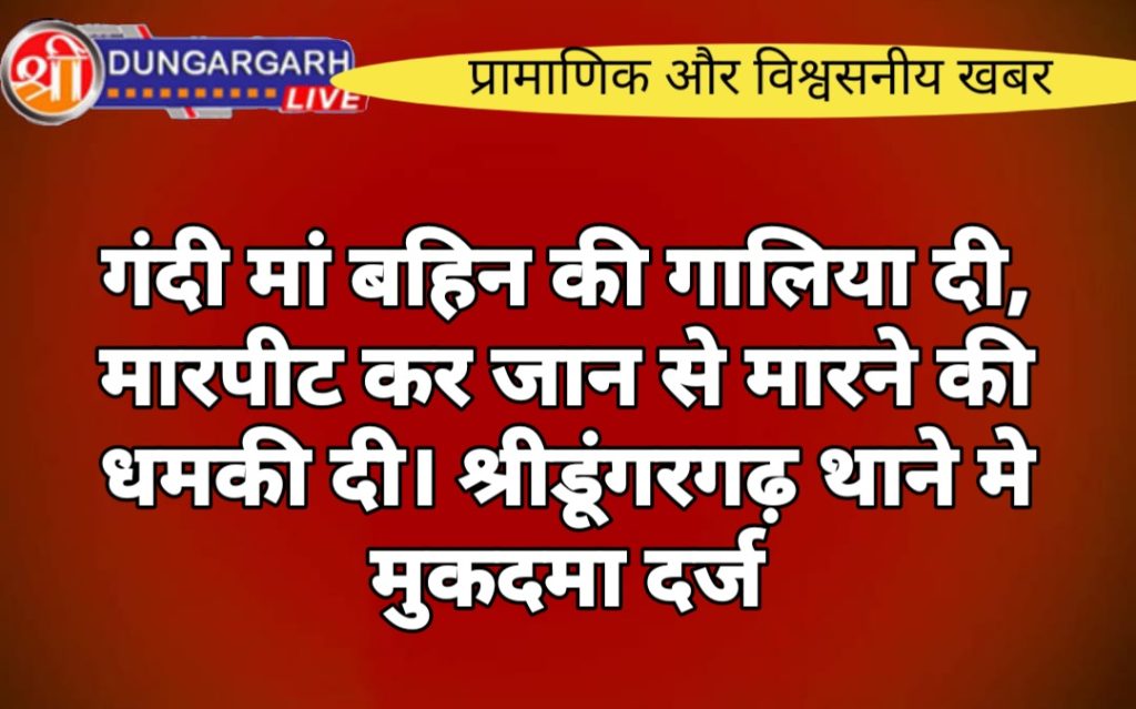श्रीडूंगरगढ़ उपखंड के कल्यानसर नया की घटना है पीड़ित सुगनाराम पुत्र भूराराम जाती नायक ने बताया कि भोमाराम पुत्र रामेश्वर लाल नायक के खिलाफ आरोप लगाते हुए पीड़ित ने बताया कि वो 10 अगस्त को सुबह 11 बजे वह अपने घर से दुकान जा रहा था तभी आरोपी ने रास्ता रोक कर गली गलौच की और मारपीट करते हुए उसकी जेब से नगदी रुपये निकल लिए। पुलिस ने मामला दर्ज कर जांच हेड कांस्टेबल आवड़दान को सुपुर्द कर दी है