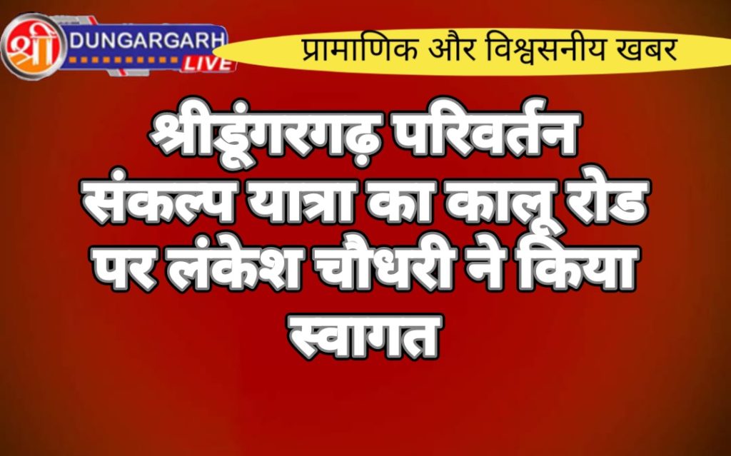 परिवर्तन संकल्प यात्रा के श्रीडूंगरगढ़ आगमन पर कालू रोड पर भाजपा नेत्री लकेश चौधरी ने परिवर्तन यात्रा का स्वागत किया। परिवर्तन यात्रा में शामिल केंद्रीय मंत्री अर्जुनराम मेघवाल, केंद्रीय मंत्री गजेन्द्र सिंह शेखावत और बीकानेर प्रभारी हरीश चौधरी का स्वागत भाजपा नेत्री लकेश चौधरी ने तिलक लगाकर स्वागत किया। केंद्रीय मंत्री अर्जुनराम मेघवाल ने उपस्थित जनसमुदाय को राजस्थान की सरकार को भ्रष्टाचारी सरकार बताया। लकेश चौधरी ने यात्रा में शामिल सभी भाजपा नेताओं का स्वागत माला और साफा पहनाकर किया।