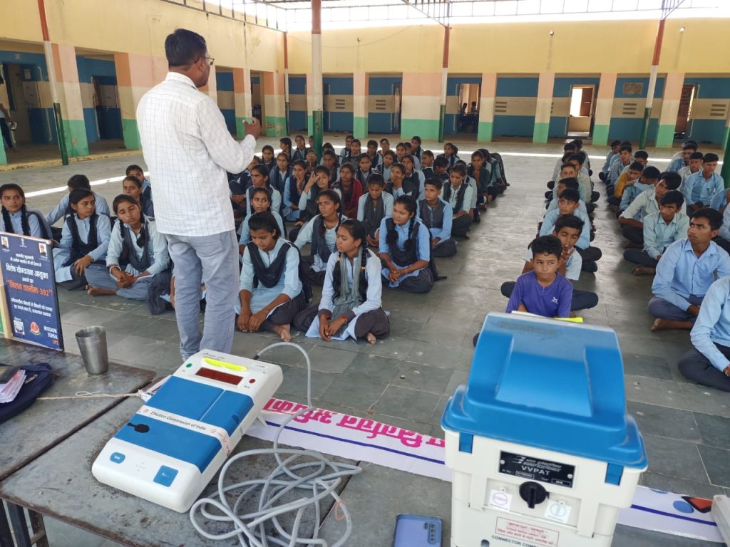 श्रीडूँगरगढ़ उपखंड की ग्राम पंचायतों कल्याणसर नया,कल्याणसर पुराना और पूंदलसर के राजकीय उच्च माध्यमिक विद्यालयों में निर्वाचन विभाग द्वारा चलाए जा रहे मतदाता जागरूकता अभियान के तहत मतदान प्रक्रिया की जानकारी देने हेतु निर्वाचन विभाग द्वारा नियुक्त मतदाता जागरूकता MDV टीम इवीएम , वीवीपेट और बैलेट मशीन आदि सामग्री साथ लेकर आई और विद्यार्थियों के समक्ष सजीव प्रदर्शन किया गया । ALMT श्री नौरत मल शर्मा ने सर्वप्रथम इस अभियान का उद्देश्य समझाते हुए बताया कि उच्च कक्षाओं के विद्यार्थियों में से आने वाले चुनावों तक मतदान हेतु वयस्क आयु पूर्ण करके पहली बार मतदाता होने का गौरव प्राप्त करेंगे इसलिए नये मतदाताओं को मतदान प्रक्रिया की जानकारी तथा अन्य मतदान संबंधी जानकारियों का होना आवश्यक है ! टीम सदस्य ALMT श्री सहीराम भांभू तथा श्री किशोरी लाल मीणा ने एक- एक करके विद्यार्थियों को मतदान की पूरी प्रक्रिया के तहत डेमोंस्ट्रेशन करवाकर दिखाया। कल्याणसर नया में संस्था प्रधान श्री नन्दराम सिद्ध ने मतदान की आवश्यकता और महत्व पर प्रकाश डालते हुए विद्यार्थियों को इसकी जानकारी अपने परिवारजनों को भी देने के लिए कहा| कार्यक्रम के अंत में विद्यार्थियों को मतदान की शपथ दिलवाई गयी