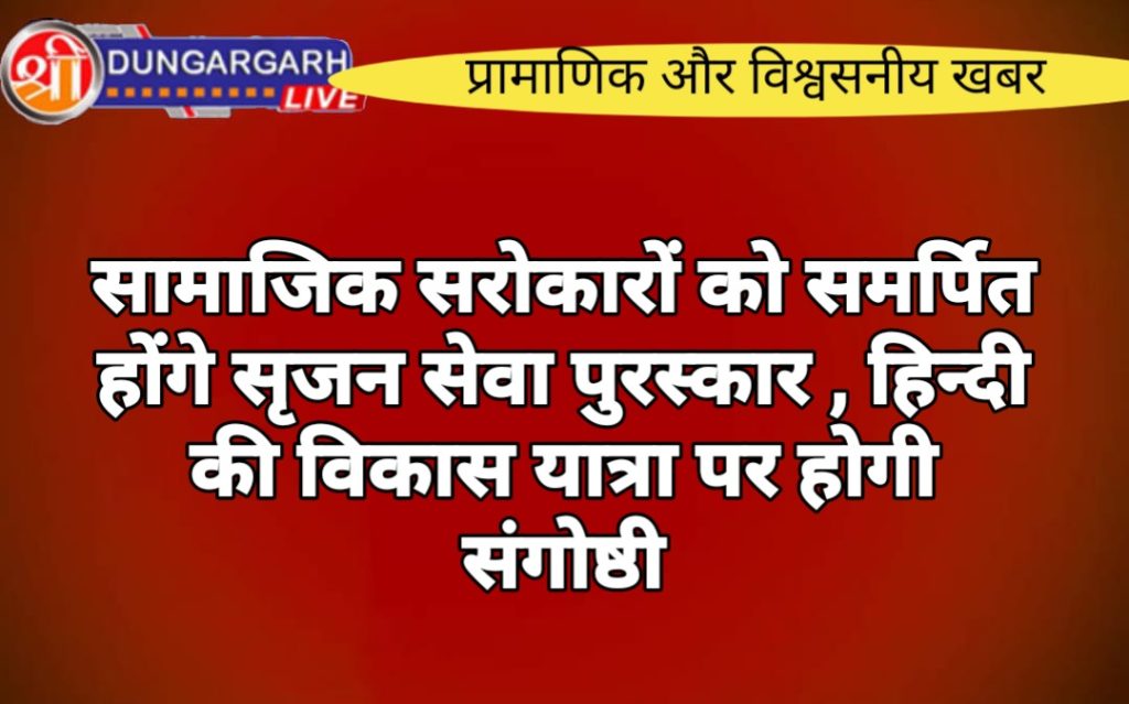 श्रीडूंगरगढ़ यहां की राष्ट्रभाषा हिन्दी प्रचार समिति की ओर से गुरुवार को हिन्दी दिवस समारोह मनाया जाएगा। संस्थाध्यक्ष श्याम महर्षि ने बताया कि इस अवसर पर आयोजित संगोष्ठी में हिन्दी की विकास यात्रा पर विमर्श होगा। इसके साथ ही संस्था की सर्वोच्च मानद उपाधि साहित्यश्री व सृजन सेवा पुरस्कार दिए जाएंगे।