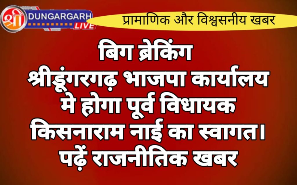 भारतीय जनता पार्टी कार्यालय श्रीडूंगरगढ़ में होगा पूर्व विधायक किसनाराम नाई का स्वागत । भाजपा पूर्व जिलाध्यक्ष ताराचंद सारस्वत ने बताया की दिनांक 18 सितंबर को दोपहर 3 बजे भारतीय जनता पार्टी कार्यालय,वार्ड न.17,काली माता मन्दिर के पास,बिग्गा बास, श्रीडूंगरगढ़ में पूर्व विधायक किशनाराम नाई का स्वागत कार्यक्रम होगा । पूर्व जिलाध्यक्ष ताराचन्द सारस्वत ने आज पूर्व विधायक किसनाराम नाई के आवास पर जाकर औपचारिक मुलाकात की। पूर्व जिलाध्यक्ष सारस्वत ने पूर्व विधायक को भाजपा कार्यालय में निमंत्रण दिया और उनके भाजपा में वापसी पर स्वागत समारोह आयोजन पर चर्चा की।