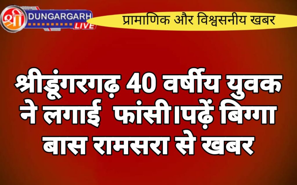 दुःखद खबर गांव बिग्गाबास रामसरा से आई। इसी गांव के बसंत कुमार पुत्र निरंजन ब्राह्मण ने ठाकुरजी मंदिर परिसर में बनी धर्मशाला के एक कमरे में फांसी का फंदा लगा लिया। हैड कांस्टेबल सुरेश कुमार गुर्जर टीम के साथ मौके पर पहुंचे व शव को मोर्चरी में रखवाया। सुबह शव का पोस्टमार्टम करवा शव परिजनों के सुपुर्द किया जाएगा।