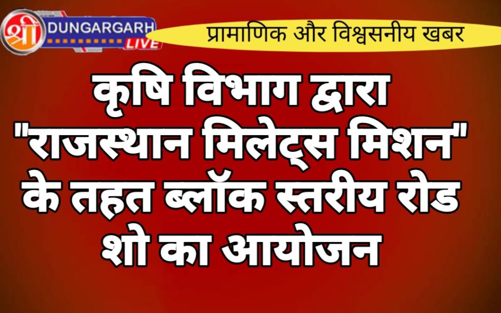 श्रीडूंगरगढ़ कृषि विभाग राजस्थान सरकार द्वारा अंतरराष्ट्रीय मिलेट्स ईयर 2023 के उपलक्ष्य में राजस्थान मिलेट्स मिशन योजनान्तर्गत श्रीडूंगरगढ़ ब्लॉक में “ब्लॉक स्तरीय रोड शो” का आयोजन किया गया। आज प्रातः कार्यालय सहायक निदेशक कृषि विस्तार से सहायक निदेशक रघुवरदयाल सुथार ने हरी झंडी दिखा कर मिलेट्स रथ को रवाना किया गया। इस अवसर उन्होंने बताया की राज्य सरकार के आदेशानुसार प्रत्येक ब्लॉक में एक दिवसीय रोड शो का आयोजन किया जा रहा है जिसमे मिलेट्स रथ गांव गांव जा कर मिलेट्स (मोटे अनाज) के प्रति जागरूकता पैदा करेगा। कृषि अधिकारी कन्हैयालाल सारस्वत ने बताया की इस वर्ष को संयुक्त राष्ट्र महासभा द्वारा अंतरराष्ट्रीय मिलेट्स वर्ष घोषित किया गया है। प्रधानमंत्री द्वारा “अन्न” का नाम देकर देश में मोटे अनाज के उत्पादन एवम प्रयोग को प्रोत्साहन देने के लिए विशेष प्रयास किए जा रहे हैं। माननीय मुख्यमंत्री एवम् कृषि मंत्री राजस्थान द्वारा इस वर्ष बजट में राजस्थान मिलेट्स मिशन की घोषणा कर राज्य में बाजरा, ज्वार, रागी सहित तमाम मोटे अनाज के क्षेत्र, उत्पादन व उत्पादकता को बढ़ावा दिया जाएगा। मिशन के अंतर्गत किसानों एवम उद्यमियों द्वारा मोटे अनाज के प्रसंस्करण के लिए यूनिट स्थापना के लिए लागत का 50 प्रतिशत या 50 लाख रुपए तक का अनुदान उपलब्ध करवाया जा रहा है। श्री सारस्वत ने बताया की इस एक दिवसीय रोड शो के दौरान ब्लॉक के लगभग 25-30 गांवों को कवर किया जा रहा है। मिलेट्स रथ पर मोटे अनाज से संबंधित बैनर लगे हुए है तथा माइक से मिलेट्स गीत, स्लोगन तथा योजनाओं की जानकारी दी जा रही है।इस दौरान कृषि अधिकारी सुरेंद्र मारू, सहायक कृषि अधिकारी हितेश जांगिड़, कृषि पर्यवेक्षक, जनप्रतिनिधियों सहित बड़ी संख्या में किसान उपस्थित थे।