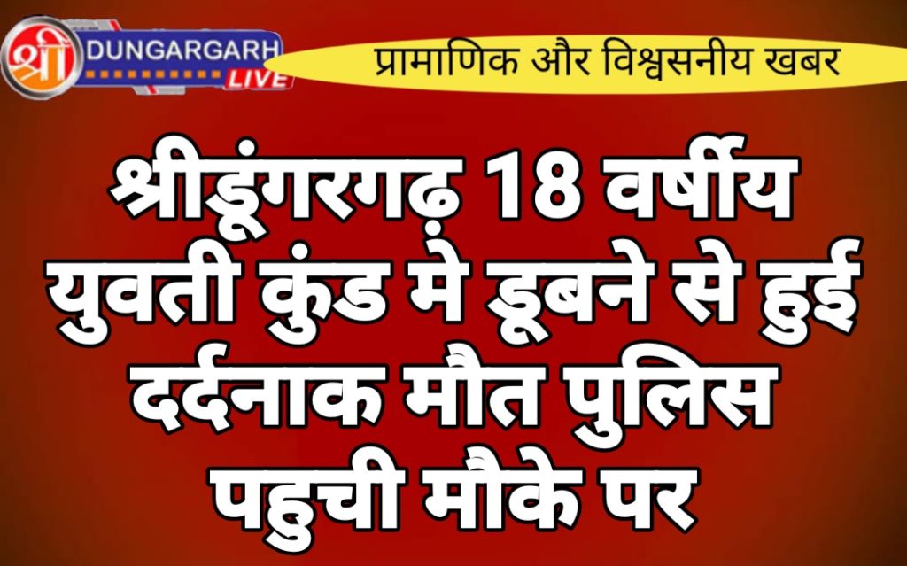 श्रीडूंगरगढ़ पानी की कुंड में डूबने से एक 18 वर्षीय युवती की दर्दनाक मौत हो गई मिली जानकारी के अनुसार मृतक युवती पहचान गोमती सिखवाल पुत्री तोलाराम आड़सर बास वार्ड न 27 के रूप में हुई है फिलहाल कारणों का अभी खुलासा नहीं हुआ है घटना की जानकारी मिलने पर श्रीडूंगरगढ़ पुलिस के हेड कांस्टेबल बलवीर काजला कांस्टेबल अजीत सिंह अनिल कुमार अस्पताल पहुंच चुके है और मामले की जांच कर रहे है।