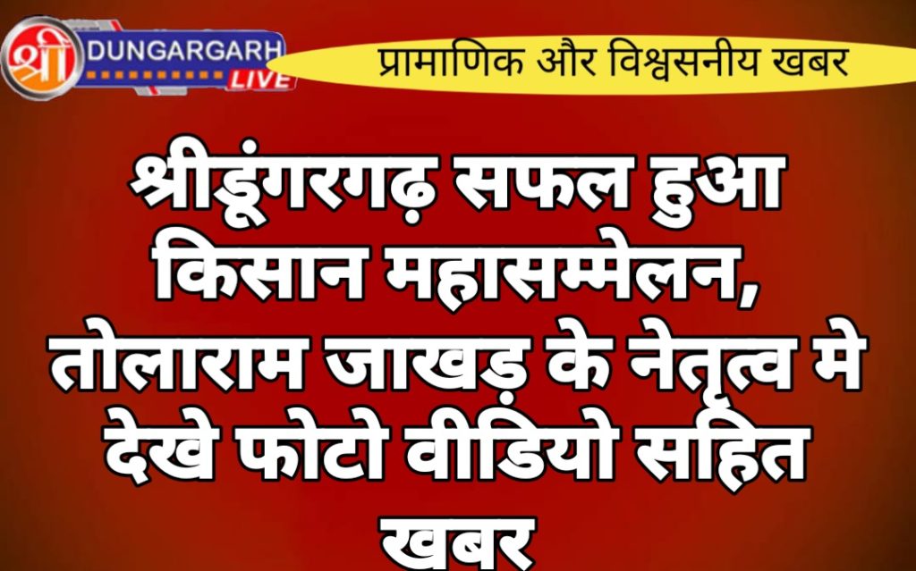 श्रीडूंगरगढ़ किसान महासम्मेलन मे पहुंचे हजारों की संख्या मे दूर दराज खेत ढाणी से बड़ी संख्या मे किसान एकत्रित हुवे।किसान सम्मेलन मे भारतीय किसान संघ जोधपुर प्रांत के बेनर तले हुई। दीप प्रज्वलित कर किसान महासम्मेलन का विधिवत रूप से संचालन किया।सम्मेलन के आयोजक तोलाराम जाखड़ ने सभी अतिथियों का फूलमालाओं व साफा पहना कर स्वागत किया एवं सम्मेलन को सफल बनाने वाले हजारों किसानों का आभार जताया। भगवान बलराम और भारत माता के पूजन व ध्वजारोहण से शुरू कार्यक्रम की अध्यक्षता संघ के प्रदेशाध्यक्ष दलाराम चौधरी ने की व अतिथि रूप में प्रदेश मंत्री तुलछाराम सिंवर, प्रांत अध्यक्ष माणकराम पडिहार, प्रांत मंत्री व जिला प्रभारी ओमसिंह गोदारा, जिलाध्यक्ष कैलाश जाजड़ा, संभाग युवा प्रमुख शंभूसिंह राठौड़ मौजूद रहे। कार्यक्रम में संघ के विभाग संघ चालक टेकचंद बरडिया का भी सानिध्य रहा।प्रदेश मंत्री तुलछाराम सिंवर ने बताया कि क्षेत्र के किसानों की समस्या फसल बीमा और बिजली की समस्या से अभी तक कोई सहयोग नहीं मिला है जिसमें हमारी जागरूकता की कमी रहीं जिसका हमे चिंतन की जरूरत है । मनरेगा योजना का विरोध करते हुवे कहा कि जिससे किसानों को मजदूर नहीं मिल रहा है सींवर ने कहा कि फसल बीमा के नाम पर कई कंपनियों ने भ्रष्ट अधिकारियों के साथ मिलकर मलाई खाई है परंतु अब किसानों को उनका हक मिलना चाहिए। बीमा क्लेम के नाम पर धोखा और बंद करनी होगी। सींवर ने कहा कि खेती में लागत बढ़ती जा रही है। और पानी लगातार नीचे जा रहा है किसान का संघर्ष बढ़ता जा रहा है और किसान योजनाओं का भ्रष्टाचार भी कई सौ करोड़ का होने लग गया है जो किसान के जागरूक हुए बिना उसे नहीं मिलेगा किसान महासम्मेलन मे बड़ी संख्या मे जनप्रतिनिधि और किसान मौजूद रहे।