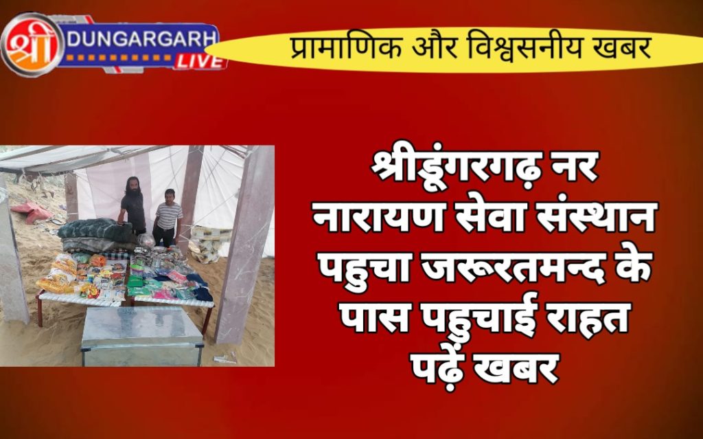क्षेत्र कि अग्रणी सेवा संस्थान ने पहुचाई जरूरतमन्द को राहत नर नारायण सेवा संस्थान की तरफ से आगजनी परिवार को पहुंचाई मदद , आज से तीन दिन पहले नर नारायण संस्थान को सुचना मिली थी की मोमासर बास वार्ड नंबर 9 मे एक गरीब आदमी के परिवार की झोपडी जल कर राख हो गई थी उसमे रखा सब जरूरी समान भी राख हो गया, संस्थान ने आज इस परिवार को दो महीने का राशन, जरूरी बर्तन, नए दस जोड़ी कपड़े, माचा, रजाई पथरना वगैरह पहुचाये है और साथ ही साथ नई झोपडी भी बनवा के दी है यह सब सामान संस्थान के सभी सहयोग कर्ताओ के सहयोग से हुवा है संस्थान के सेवादार श्याम करनानी, आनंद जोशी और सुभम महेश्वरी, इस सेवा कार्य मे आनंद जोशी की भूमिका अहम रही सेवा की सुचना संस्थान के संस्थापक धनराज जस्सू रोड़ा वाले ने दी है