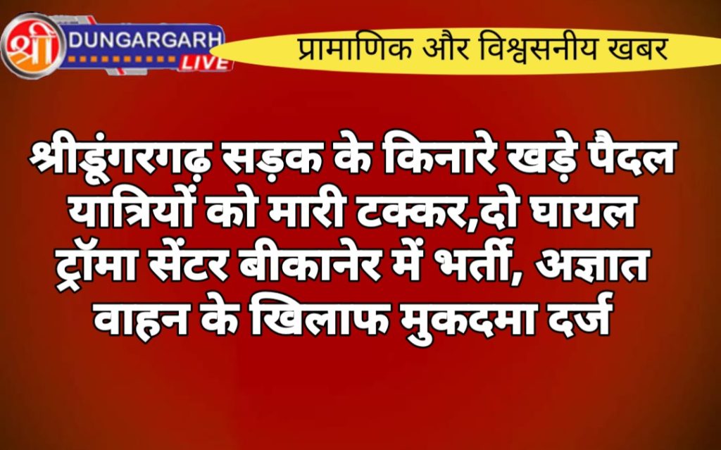 सेरूणा थाने में मुकदमा दर्ज करवाते हुए पुरखाराम पुत्र हरदास उम्र 23 साल जाति मेघवाल निवासी कुचोर आथुनी ने बताया कि मेरे फोन पर किसी का फोन आया कि आपका भाई का सड़क पर एक्सीडेंट हो गए हैं और आप ट्रॉमा सेंटर बीकानेर पहुंचे। मैं बीकानेर पहुंचने पर देखा कि मेरे भाई सुंदरलाल और भाई का दोस्त सुनील के बहुत गंभीर चोट आई हुई है और पैरों की हड्डियां भी टूटी हुई है उन्होंने बताया कि हम पूनरासर के पास सड़क पर खड़े थे और किसी अज्ञात गाड़ी ने हमको टक्कर मार दी गाड़ी संख्या RJ 07 CE 1970 ह राहिगरो और विजयपाल ने हमको ट्रॉमा सेंट्रल बीकानेर पहुंचाया। सेरूणा पुलिस ने अज्ञात वाहन के खिलाफ मुकदमा दर्ज कर आगे की जांच महेश कुमार को सौंप दि हैं